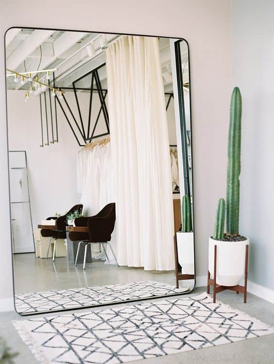 Large mirrors look fantastic in all their forms, especially if they are located in an impressive framework that attracts attention. Hung on the wall or just leaning on him, the mirror in interesting shapes will make your space seem larger and brighter, and overall arrangement will be elegant and impressive.
