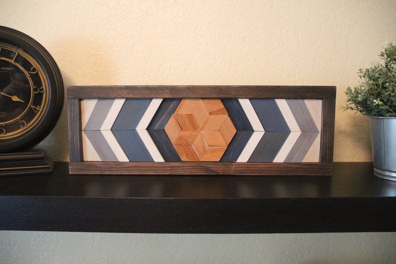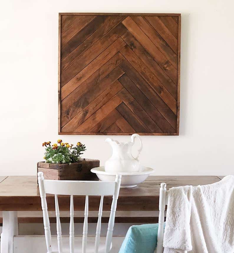 13. Reclaimed pallet wood handmade framed herringbone focal point