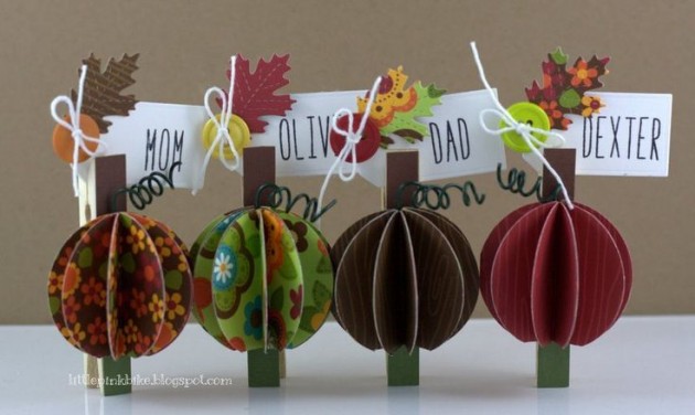 Decorate your Thanksgiving dinner table with lovely decorations. Very important décor for your table is the place cards. Make it more interesting by placing a pumpkin or apple with the name cards. Also you can write your family names on a leave. You can spray the leave with golden spray and it will look amazing. We present you 20 lovely Thanksgiving place cards that might inspire you. Enjoy the holidays…