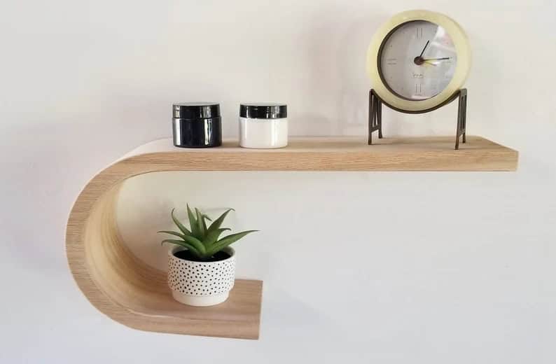 1. Curled Floating Wood Shelf