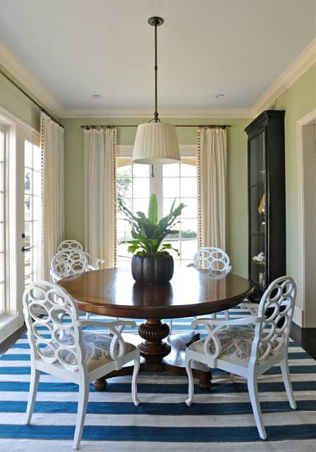 Dining table should be with the appropriate form. Small dining room looks great if you choose the round table, although a small rectangular tables can fit nicely, especially the ones who have the functional expandability. Avoid chairs with handles in small dining room, because they look bulky and take up more space.