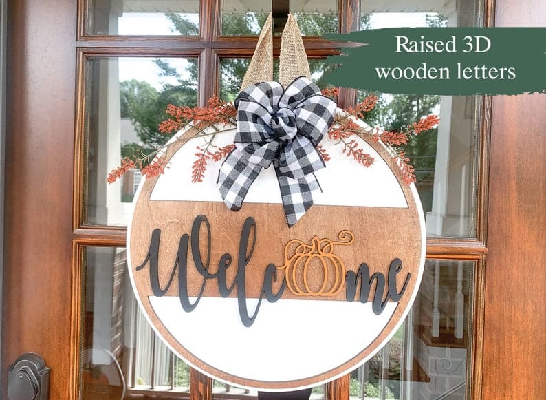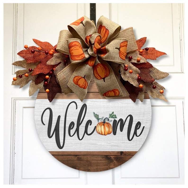 4. Welcome Pumpkin White Door Sign