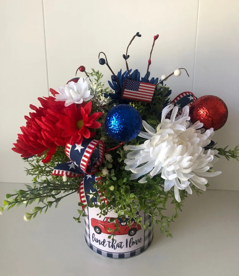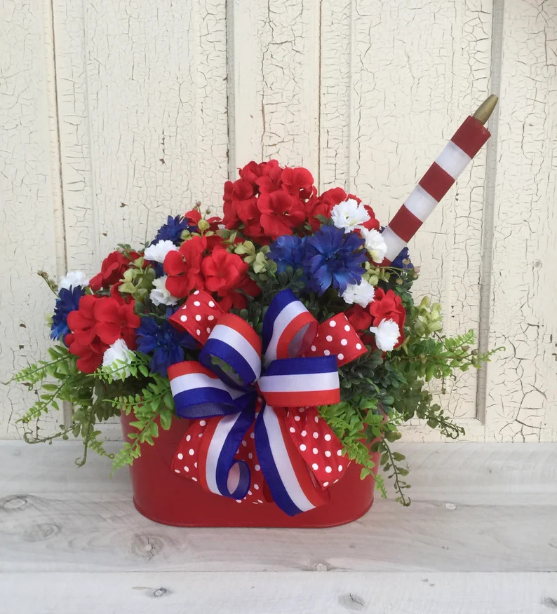 Welcome to this new collection of festive decorations in which you’re going to see 20 Wonderful 4th of July Centerpiece Designs Everyone Will Talk About. Take a few moments to explore this fresh compilation and you’re going to discover plenty of creative ways to put up a 4th of July centerpiece right in the middle of your festive tablescape. Even though I am sure the food will be great, everyone will at least mention your centerpiece. Enjoy!