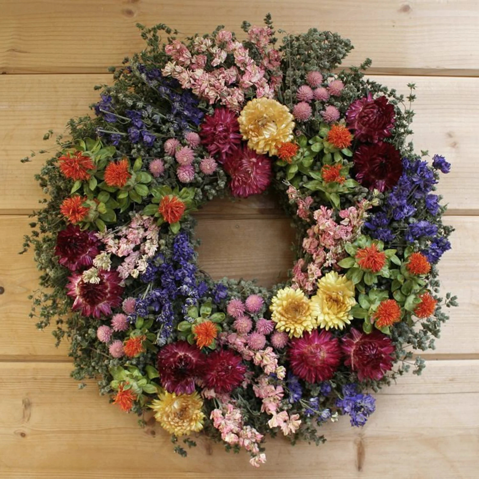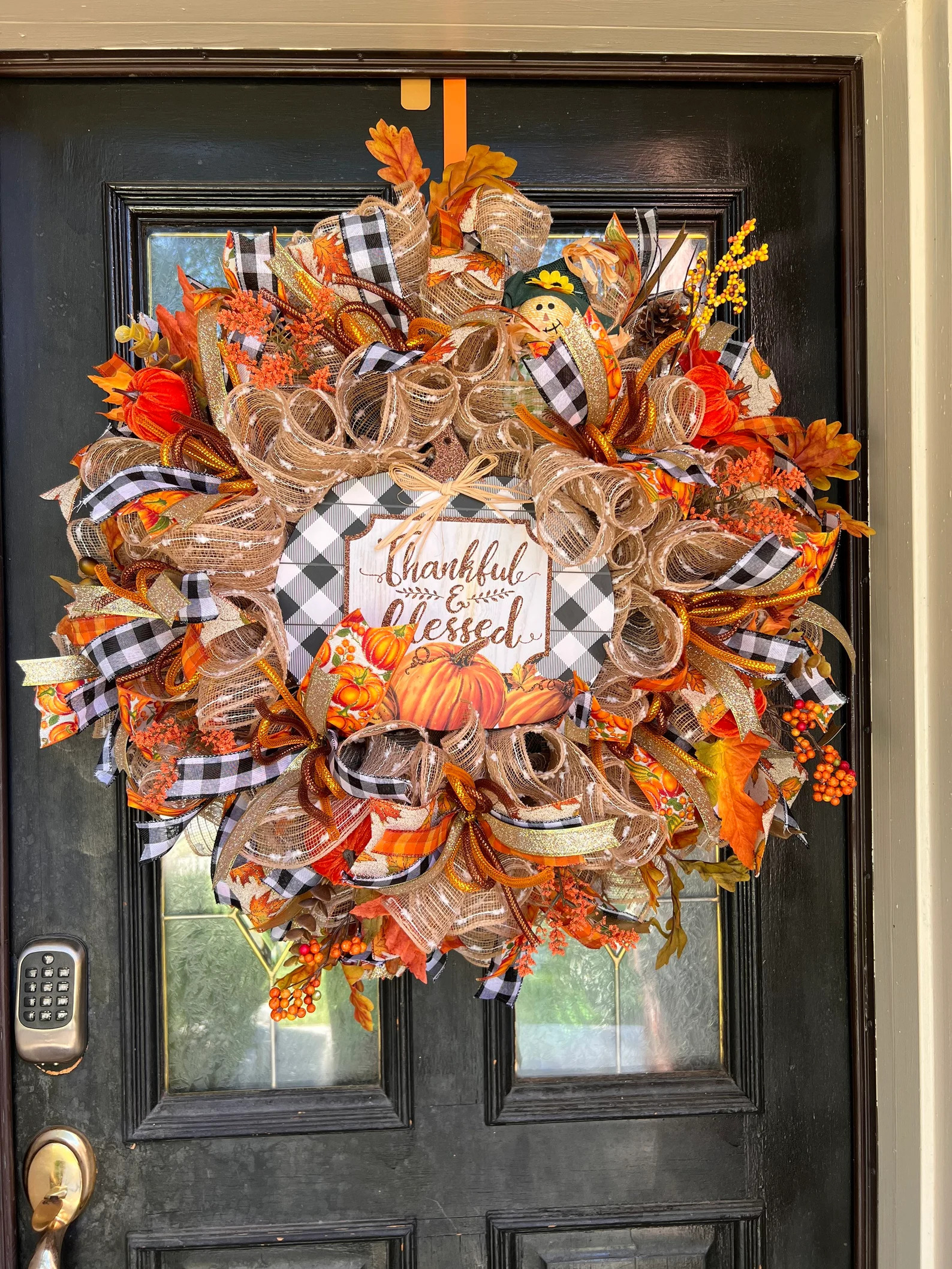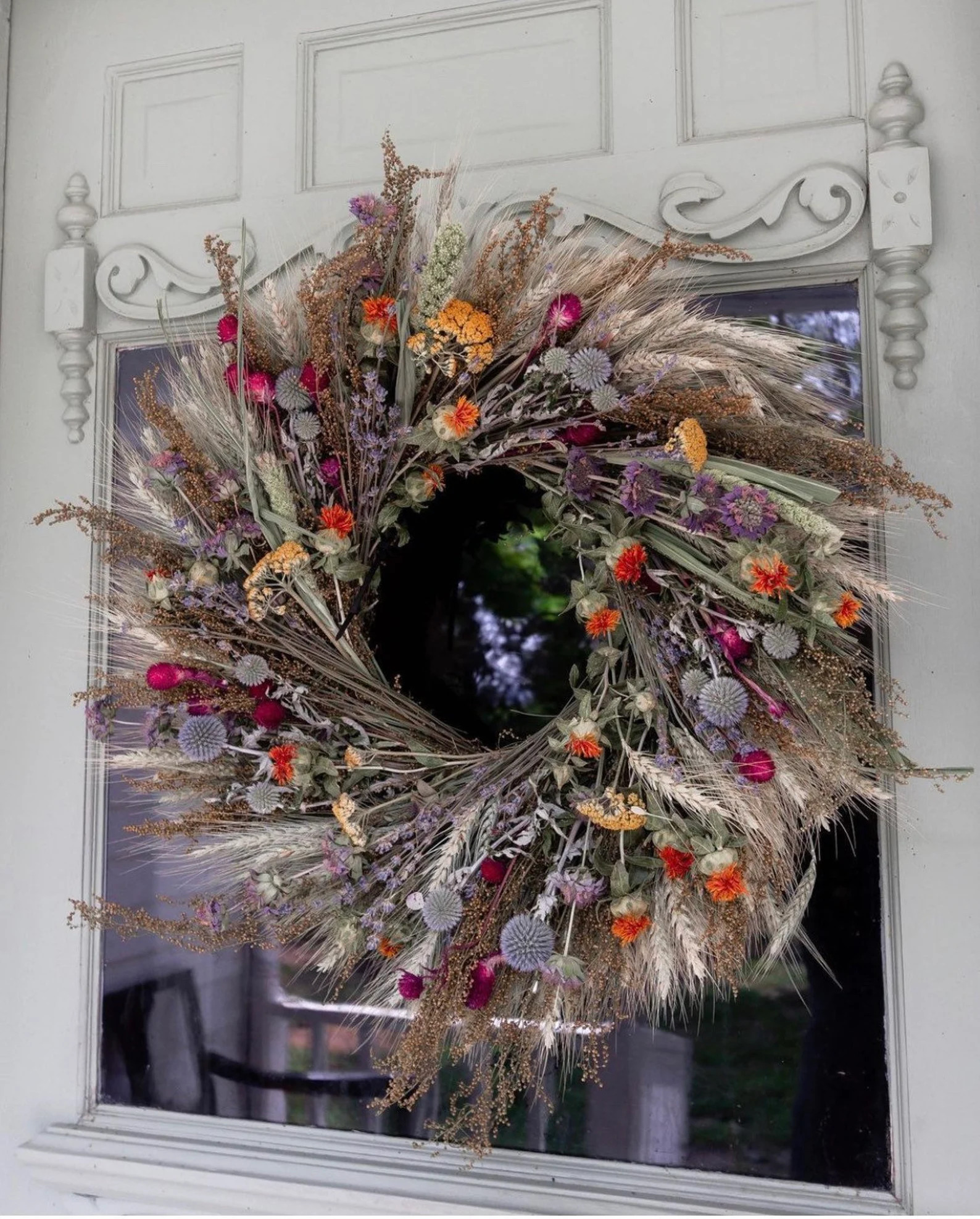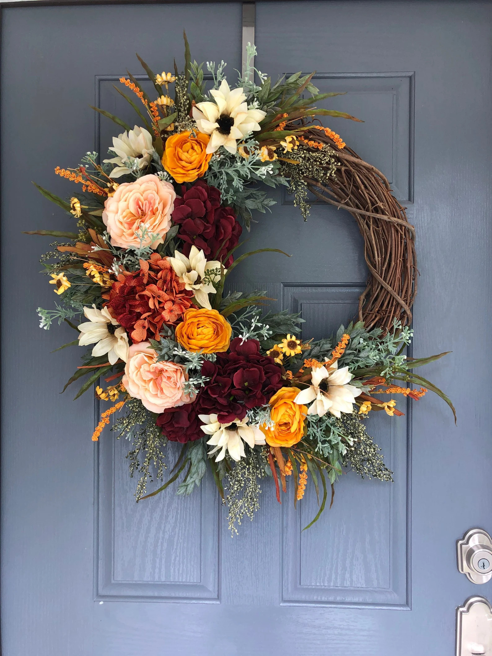 7. Autumn Leaves Queen Anne & Babies Breath Lambs Ear Wreath