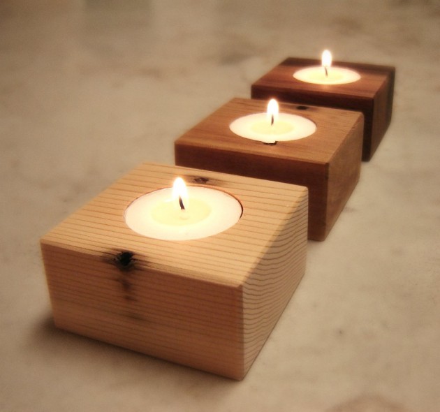 Wood Candle Holders From Reclaimed Cedar Wood
