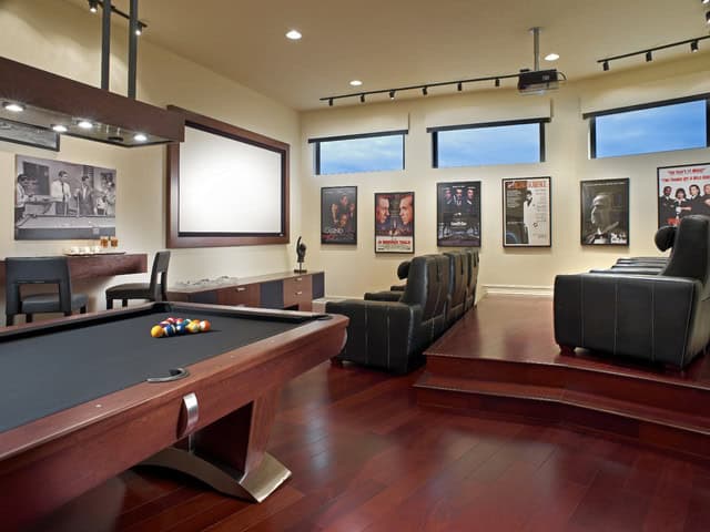 Everything depends on your desire. Your media room need to be good organized, the television should be easy to view from any couch or chair in the room and the sound should be clear. You can set some minimal decorations to enhance the whole atmosphere.