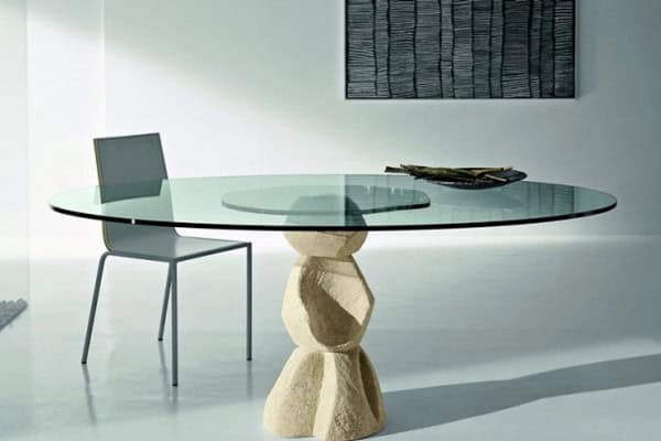 The round one are ideal for small spaces. Usually you  can find them with a wooden, iron or chrome-plated iron bases or legs, although there are so many various kinds of glass tables made in combination with different materials. From round chrome base to triangular with shiny legs we have you gathered a wonderful collection of 22 elegant glass tables.