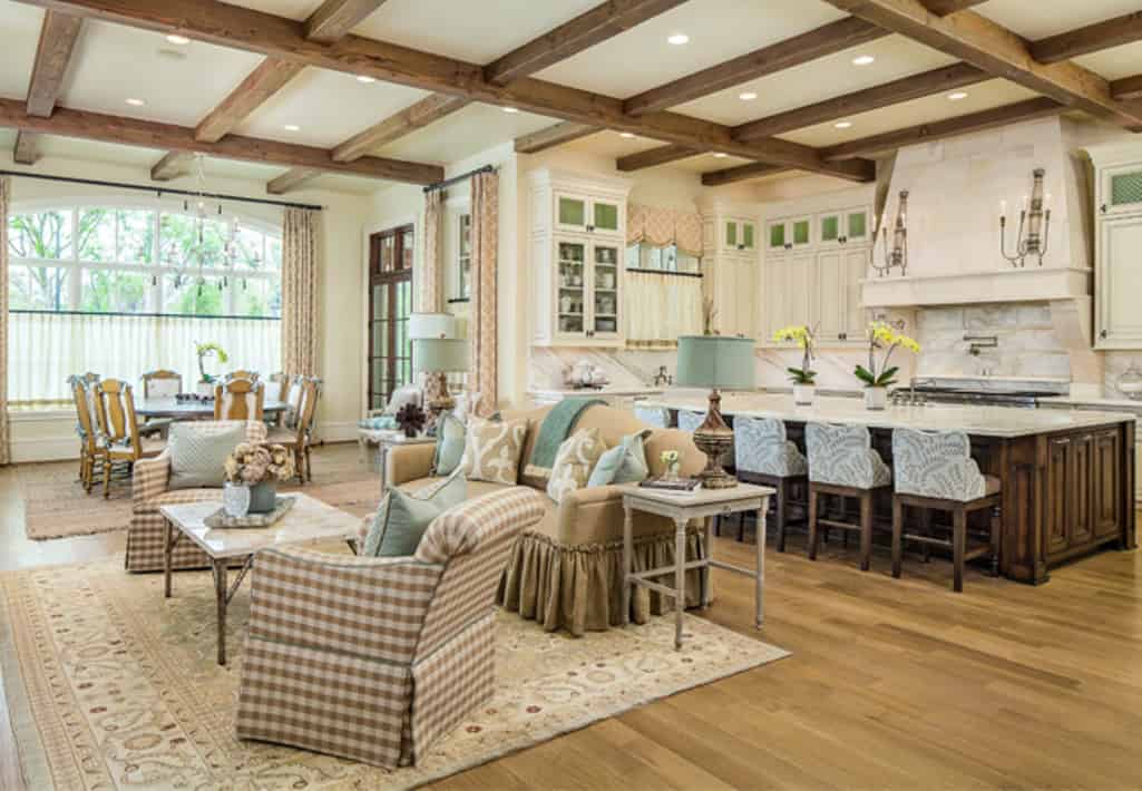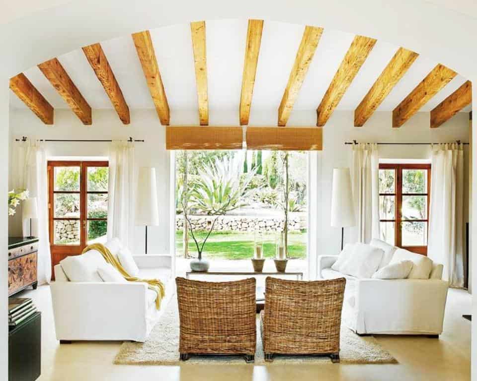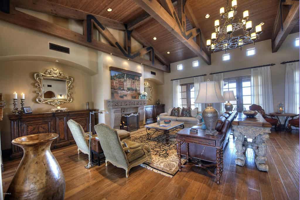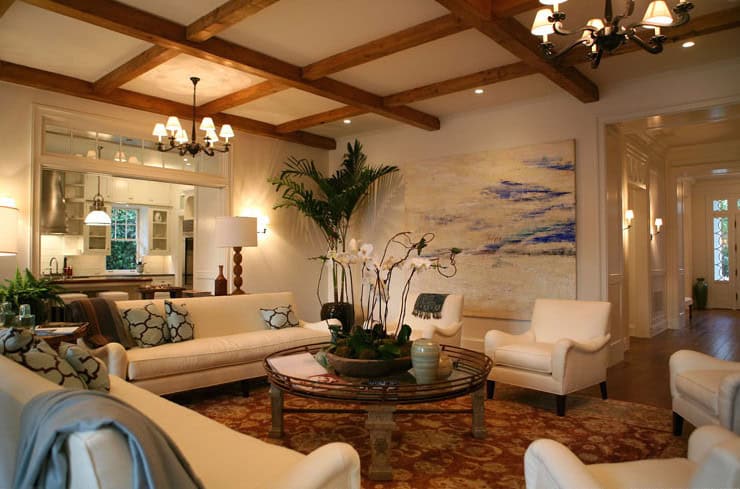 Today there are very good imitation of old wooden beams. They are made of polyurethane, and the appearance is almost with no difference compared to the natural effect. They have the same structure of the old wooden beams, with the cracks of time, tracks and unique growth rings, color from light oak to dark walnut. All these features give the interior a special spirit of comfort, with all the splendor, elegance and sophistication. Their advantage is the high, they are easy to make and rapid to install, so they can be placed on a plaster ceiling structure, only with glue. In addition, we present you one collection of some beautiful living room designs with exposed beams. Browse this collection and you might find many creative ideas for your dream living room. Enjoy!