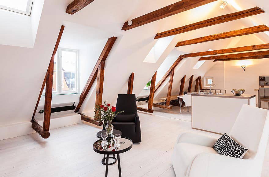 Wooden beams are beautifully highlights in the interior, with its natural beauty and rustic warmth and give a special charm to the area. Although the ceiling beams are basic features of the rustic decor, they are actually very popular and great fit in any style. Very often you can see them in the modern interior and in a great combination with other materials and furniture.