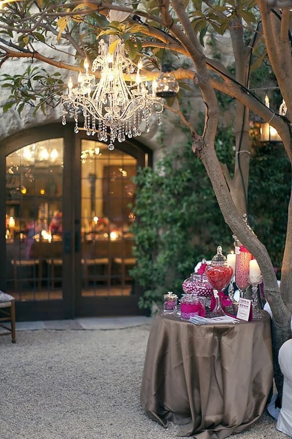 Why don’t you make your garden look magical with vintage chandeliers. Chandeliers are all about variety and personality and they’re not just for the dining room anymore. You can hang chandeliers everywhere, in any room you want even in patios or gardens. Chandeliers with their grace can make your garden look stylish and romantic. Because of their romantic look, they are often put as a décor for outdoor weddings. You can also make chandelier yourself with candles and flower vase in the center. Any time you’ll change the candles color or put different sort of flowers you will get new chandelier. Make your garden a romantic place for you and your loved ones…