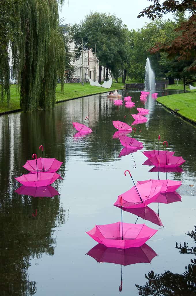 Fall is very inspiring and magical time of the year. With all that beautiful colors of the nature and the essence of the rain, makes the environment more romantic and mysterious. Many artists get inspired from the fall and make interesting pieces of art. Umbrellas are one of the items that we certainly use in this time of the year. And with their beautiful shape and different colors can be very inspiring. That is why many artists create incredible art installations with umbrellas. They put them outside on the streets as hanging art installations with lights or they make them float in the water. In any case they look magical. We present you 23 incredible umbrella art installations. Enjoy the fall…