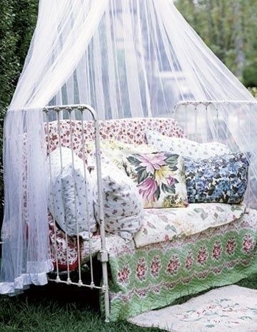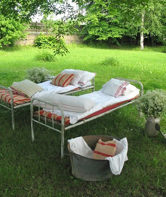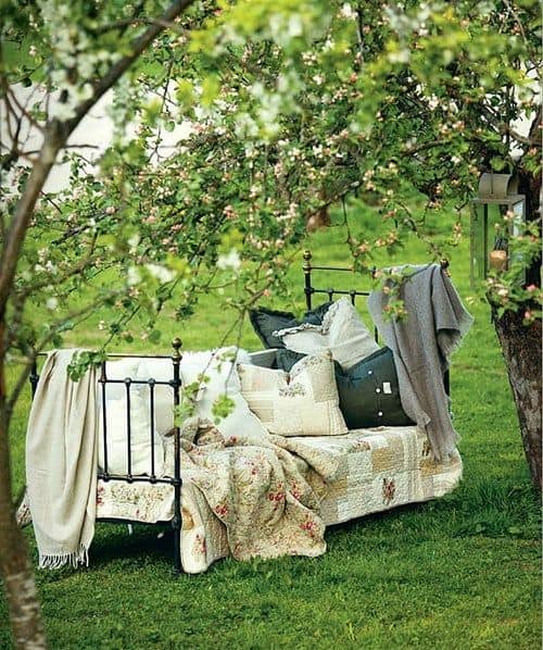 We always dream about sleeping in the garden under the stars. So if you have a garden you can make that dream come true. It is very easy, just put some vintage bed in the garden and you can sleep there all summer. Also garden beds are awesome because you can relax and read a book. At night you can light candles and make your garden the most romantic place. You can decorate your vintage garden bed with beautiful pillows with flowers that will incorporate with the green atmosphere in your garden. To take shelter from the sun you can put canopies on the vintage garden bed. It will make your garden magical. We present you 23 lovely vintage beds for your garden. Enjoy…