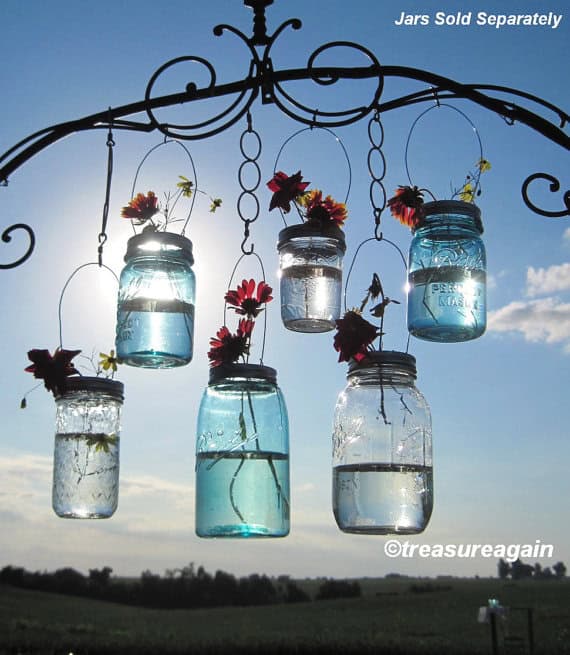 If you want to make your place more romantic and beautiful place some interesting decorations. We suggest you to put very hanging mason jars. For example you can hang mason jars in the garden or in your home. You can put flowers in them or candles. Also hanging mason jars are very popular when it comes to wedding decorations. If you want your wedding to be the most beautiful and romantic event of your life, be creative and make it happened. Hang mason jars on the wedding chairs with flowers or hang them above the wedding table. We present you 25 adorable diy hanging mason jars. Enjoy…
