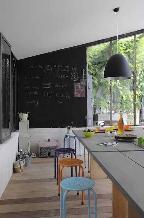 Chalkboard walls became trend in today interior design. This is very interesting way of decorating because you can do it yourself. You can draw anything you like on the wall. Every day you can have different fabulous designs. Chalkboard wall paint is special paint and is easy to apply. It is not necessary  to paint the wall in just black color. You can paint it in any color you want. Chalkboard walls can be very functional and in the same time creative. We present you 25 interiors with chalkboard walls…