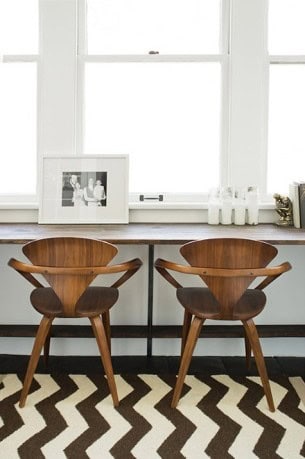 The chevron pattern is very popular in these days. It is also called zig zag. The chevron pattern can be dated back as far as 1800 B.C. in modern-day Greece, particularly in pottery and rock carvings. The chevron insignia has also been used for decades to indicate rank in the military (specifically the English Arms). As a pattern is often used in architecture, especially in the interior design. You can make the wall in chevron design or the floor. Floors with chevron design looks very powerful and sophisticated. It can be very easy integrated with the classic stiles. Also there are rugs, furniture designs or home accessories in the chevron pattern. We present you 25 amazing interior designs with chevron pattern. Enjoy…