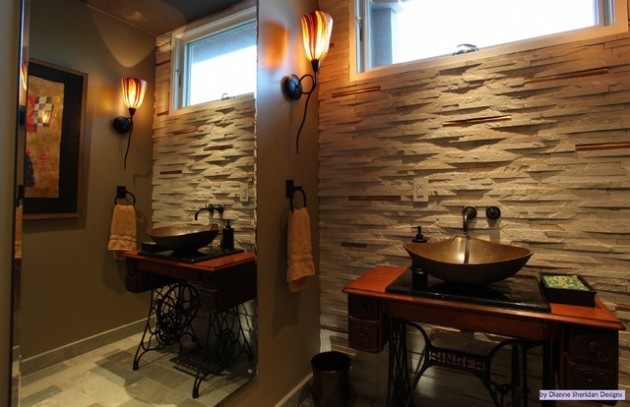 Powder room is a part from the bathroom and usually it is small place with a suitable vanity and bathroom sink with mirror. You can decorate your powder room in every single style, but it need to fit with the bathroom decor. If you want to try something new you can make mix from two styles and make unique bathroom with accented powder room. Look at our various examples and find the right one for your perfect home.