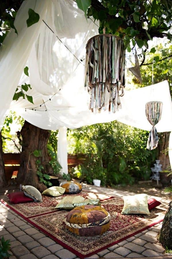 How about bohemian garden? Maybe it is time this spring to make some change in your garden and make it different than before. We suggest you to make your garden in bohemian style. Garden with bohemian style will be the perfect place for you this spring and summer. Bohemian gardens are so full with colors and positive energy. The colorful details and the green color of the garden make the space to look amazing. You can make bohemian garden with just a little effort. All you need is colorful pillows, candles and some old furniture. Also you can add more beautiful details like chandeliers or hammocks. We present you 27 amazing ideas how to make your garden bohemian style. Have fun…