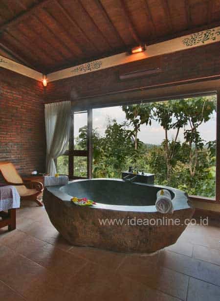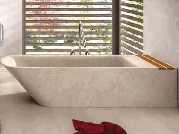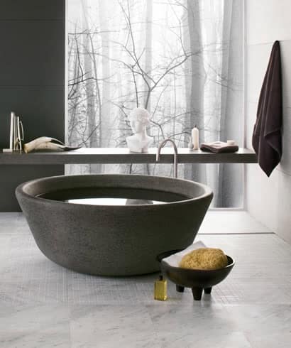 Stone as a material looks very strong and powerful. In the interior design stone will give the space natural look. Because of its different shades it can be incorporated in any room you want. Today we decide to present you how the stone look in the bathroom bathtubs. Today’s modern bathtubs are very simple and minimalistic and are often made out of stone. These kinds of bathtubs look amazing in big bathroom where the bathtub can come in first sight.  Stone material is often combined with wood so it can take some warmth out of it. Bathroom with stone bathtub have tropical and natural atmosphere as if you are somewhere outside in the open. Look at these amazing stone bathtub designs and enjoy…