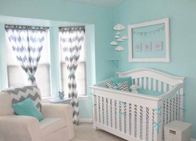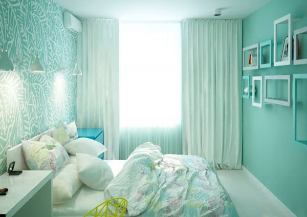 Soothing and gentle, mint green is a refreshing change from the classical colors. Ideal for both: boys and girls. It fits great with the color of chocolate and enameled surfaces with ivory. If you want to decorate the room with mint green, consider wallpapers with forest landscapes or African steppe landscapes.