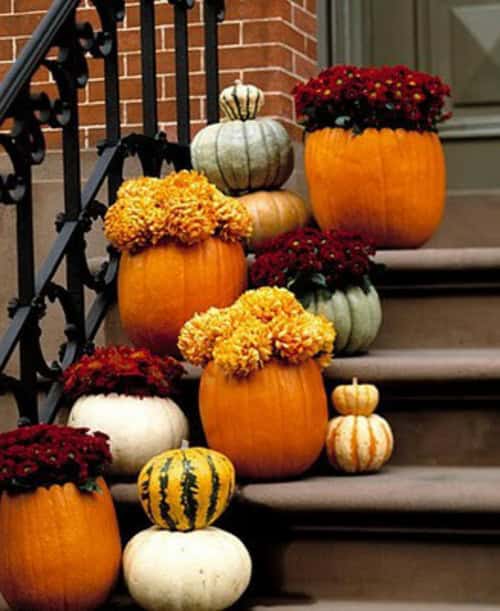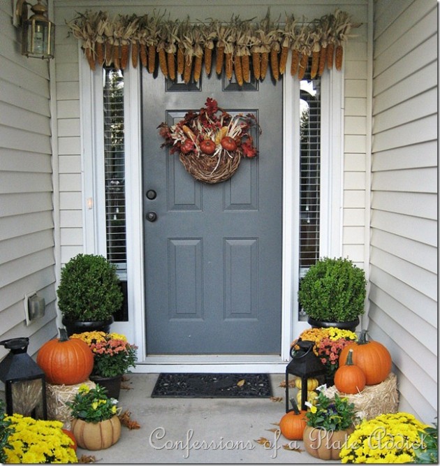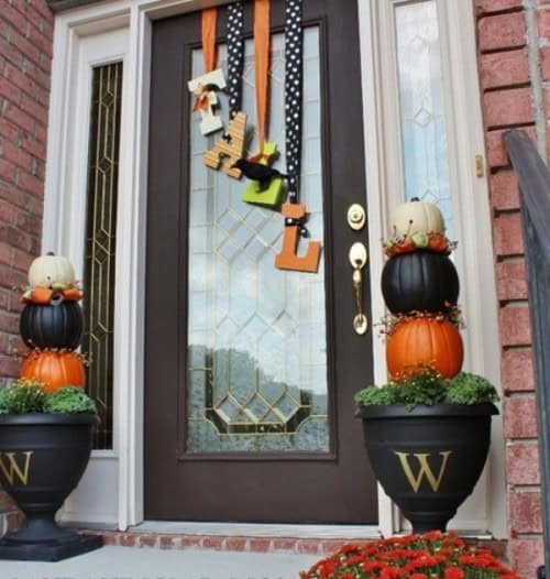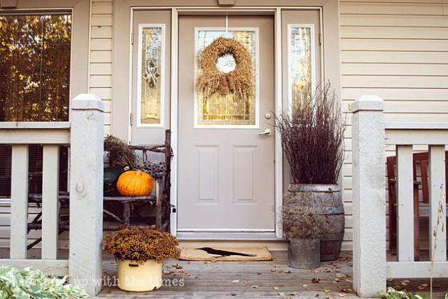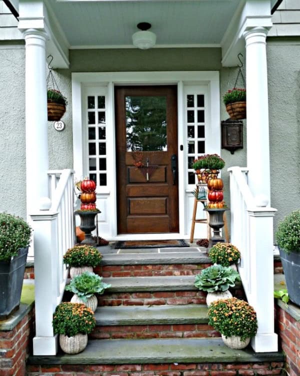 One of the necessary details at every porch because what the fall holidays is the pumpkin. We can not imagine a any fall porch without a pumpkin. No matter faux or natural, white or colorful the pumpkin is remarkable sign for every fall. Beside that you can put leaves, berries and fall style lanterns to spice up the amazing look. Even you can create your own lanterns with putting long candles into a glass lantern, or take some more small lanterns and put it into the pumpkins and your creation is ready. Bats scarecrows and skulls are interesting too. Orange and black will be a perfect idea not only for fall but especially for Halloween. Enjoy creating your fall decorations and have amazing fall!