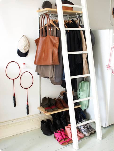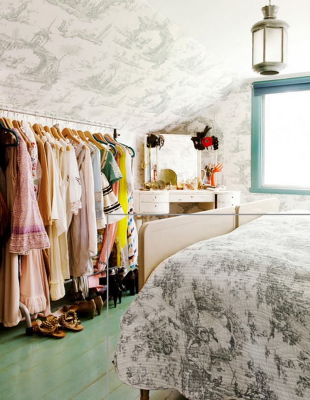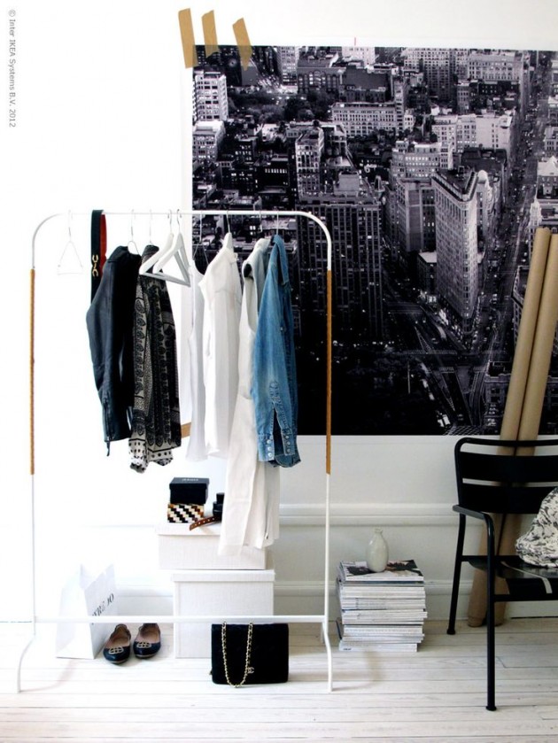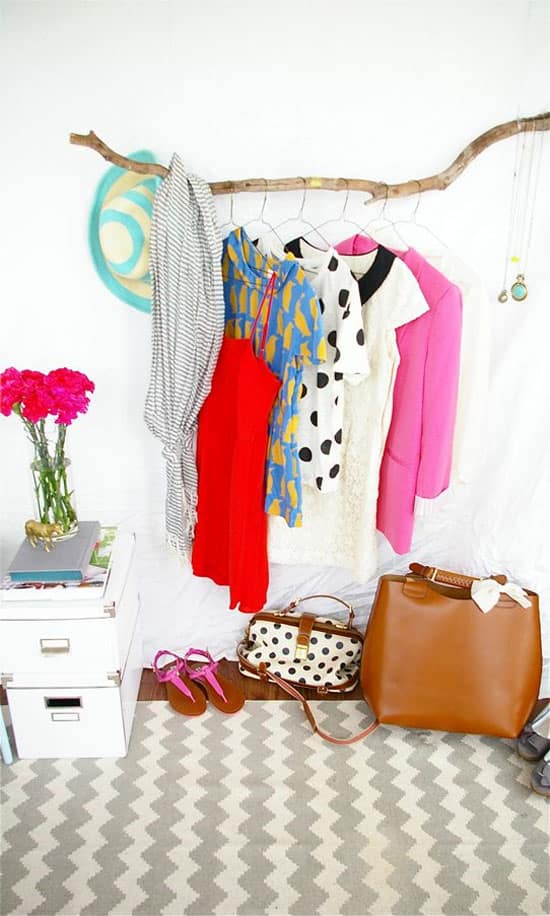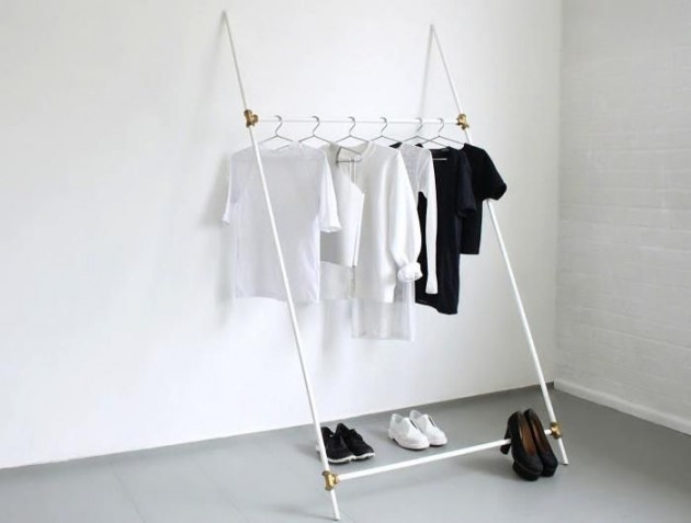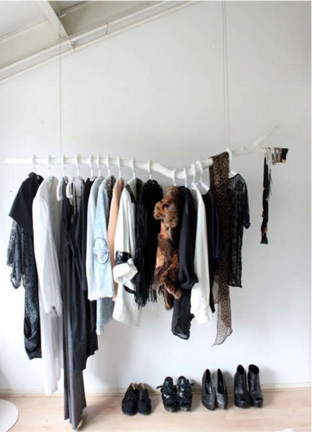 If you live in a small place where there is no space for a big closet you have to think of some alternative ways of dealing with this problem. For example you can hang your cloths on the wall on wooden hangers or even more interesting you can make hangers out of plumbing pipes. Also you can hang a broken branch from the park, it will look very chic. Industrial clothing rack can be a great solution for your problem. In the same time it will be a great piece of décor in your place and it will be very functional. We present you 30 Chic do it yourself Clothing storages…