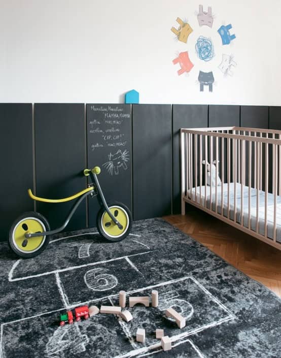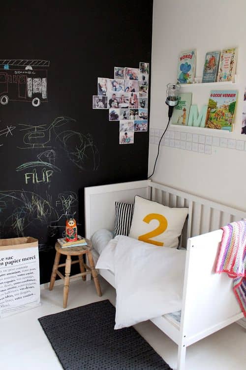 Your kids will be very happy if you make them an interesting corner in their room where they can express themselves. Paint one of the walls in chalkboard paint or paint some piece of furniture. They can draw and can do some creative drawings on the chalkboard. That would be the best corner of the room. Chalkboard paint doesn’t have to be black. You can buy or make chalkboard paint in many different colors. But if you decide to make it black you have to paint the other walls in white or in some bright color. We can help you with some interesting ideas. Have fun…