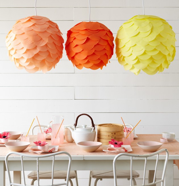 Paper lamp can be very stylish and modern piece that will make your home interesting place to live. There are a lot of paper lamps ideas that you can make it yourself. Paper lanterns come in various shapes and sizes, as well as various methods of construction. In their simplest form, they are simply a paper bag with a candle placed inside, although more complicated lanterns consist of a collapsible bamboo or metal frame of hoops covered with tough paper. You can paint them in different colors and make them look chic. Here are some lovely diy ideas for paper lamps. Enjoy…