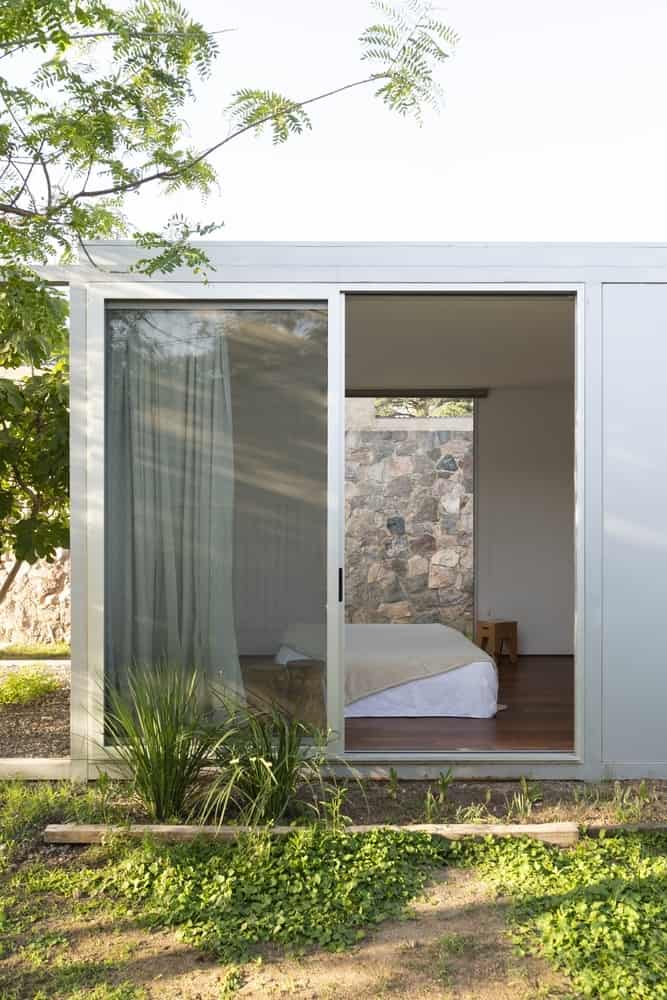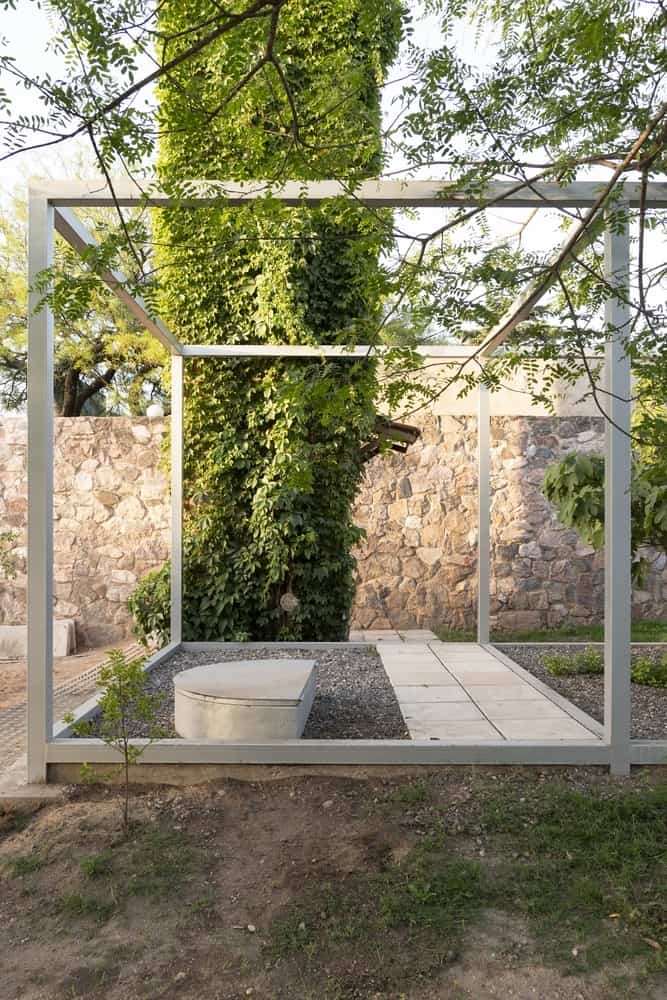 In Villa Rivera Indarte, along the banks of the Suquía River in Córdoba, Argentina, Esteras Perrote has created the 3x3x3 Pavilion—a modular structure that harmonizes with its early 20th-century surroundings while engaging in a dialogue with landscape and memory. The pavilion intertwines with pre-existing elements such as a period water tank, a deep water intake, and a stone boundary wall, creating a space where past and present coexist through architectural language.