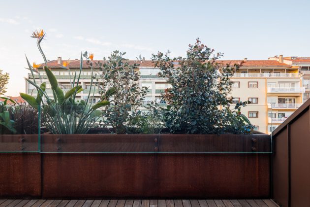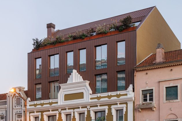 To this end, the new elevation appears set back, with the new openings having the same characterizing alignments of the existing elevation. In the rear elevation, facing Rua Cmdt. Rocha e Cunha, for the composition of the elevation, there are small protrusions that try to create a distinct rhythm, at the same time giving the possibility that the interior can be exterior.