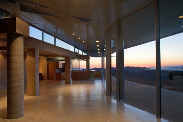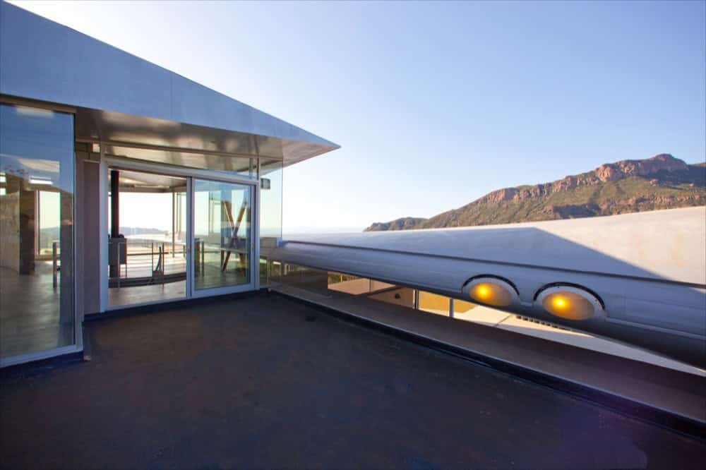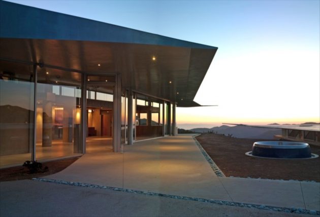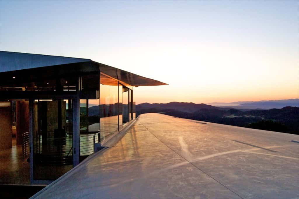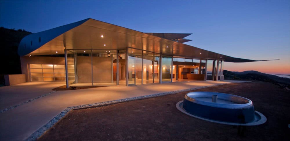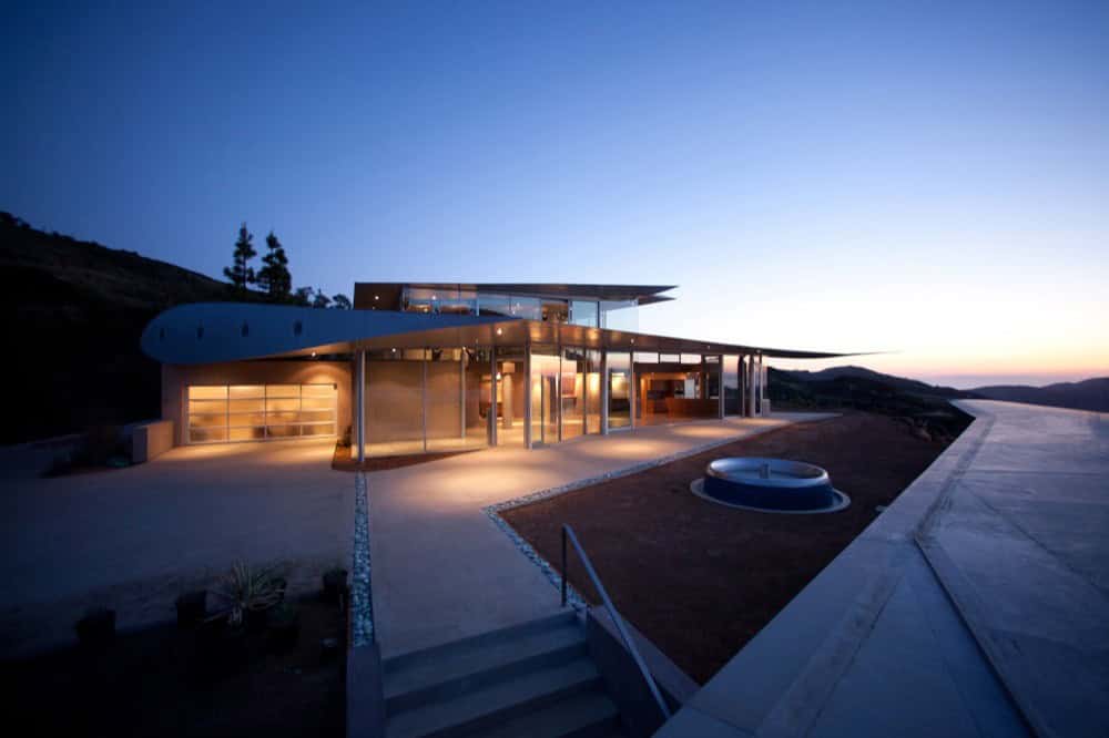 It turns out the shape and size of the plane’s wings result in a perfect curvilinear material for a creative approach to a home’s roof design. Underneath the roof are plenty of floor to ceiling windows that let stunning sights of the Pacific Ocean and the Malibu mountainside make their way inside.