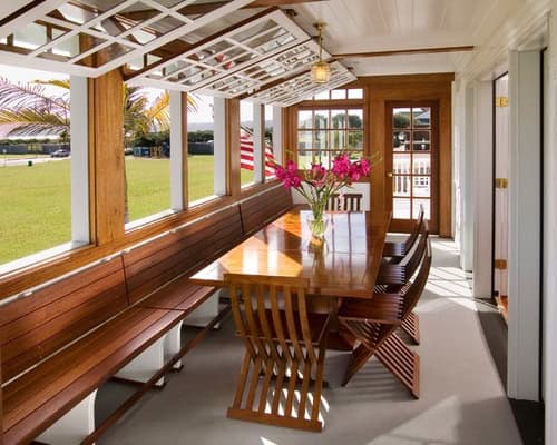 A lot fits into this narrow porch in John OBrien’s Coronado, California, home. This window-lined, second-floor porch acts as a favorite dining spot but is also great for relaxing with a good book or the morning paper. The porch, which is 8 feet by 6 feet, includes a built-in bench, a dining table and windows that swing to the ceiling. “It’s certainly cozy, but that is the fun of it,” OBrien says. “And the view of the park and Pacific Ocean is pretty special.”