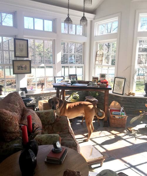 Her pup, Jasper, also loves this view and spends hours watching the birds alongside Kristel as she works.