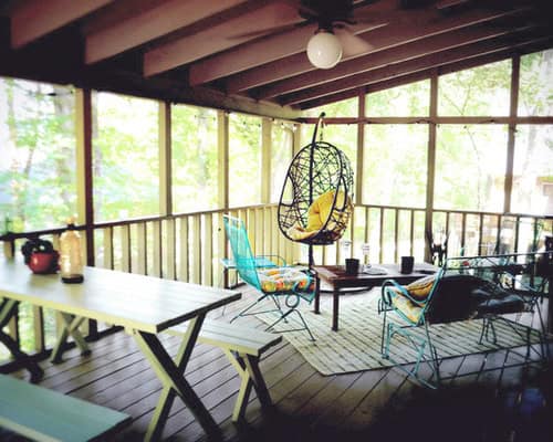 This porch in Huntsville, Alabama, feels like a treehouse most of the time to its owner, Tracy Bond. Bond and her family live in a wooded area, so the porch places them right in the middle of nature. “The wooded view from the porch will make your blood pressure drop,” she says. “It’s that calming.”