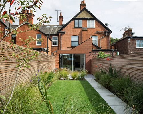 4. Horizontal lines. This garden in Berkshire, England, is all about a linear structure contrasted with natural planting. The horizontal, narrow-slatted cedar fence draws the eye down the garden, making it appear longer, while soft grasses break up the strict form.