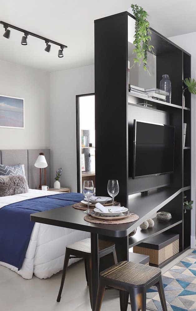 Defined how the fourth part will be used to choose the color palette. This step is essential since the colors previously defined will facilitate the work of decoration and planning of the environment. For small double rooms, the tip is to use light and neutral tones in the base of the decoration to visually increase and brighten the environment. Choose from three to four colors, two of which remain at the base, while the others can be used in detail and smaller decoration objects.