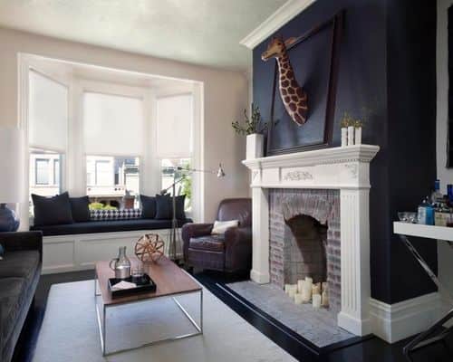 3. Dramatic. Dark paint around the fireplace gives it a serious presence in this San Francisco living room. Now the fireplace is the main focal point and the bay window complements rather than competes. This room inspires settling in for conversation with a freshly swizzled cocktail from the well-placed bar.