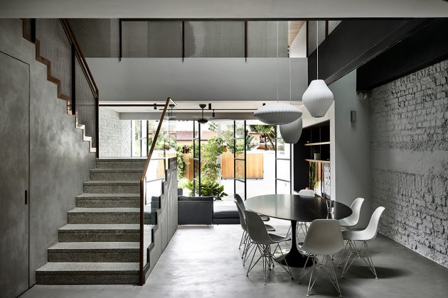 Situated in Eastern Singapore among traditional shop houses and family homes, 80ADR-House is part of a tide of renewal that ebbs slowly into the island’s older neighborhoods. An A&A project that carefully integrates classic and contemporary styles, the revamped residence subtly contrast its surroundings – with Architects drawing inspiration from the past while simultaneously adapting features for modern use.