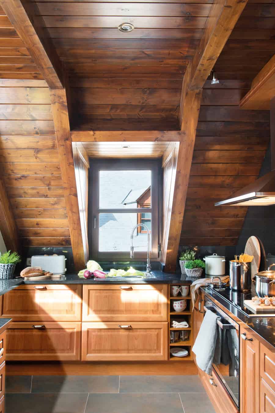 No discussion is possible. They transfer directly to the past, they add charm to the kitchen and can be extremely useful. Examples? A cupboard with a showcase on the top, a bacon table as an island to work food, wooden tableware hanging on the wall, And the fact of being different from the rest of the furniture will make them stand out more and, with this, you will gain rustic “weight”.