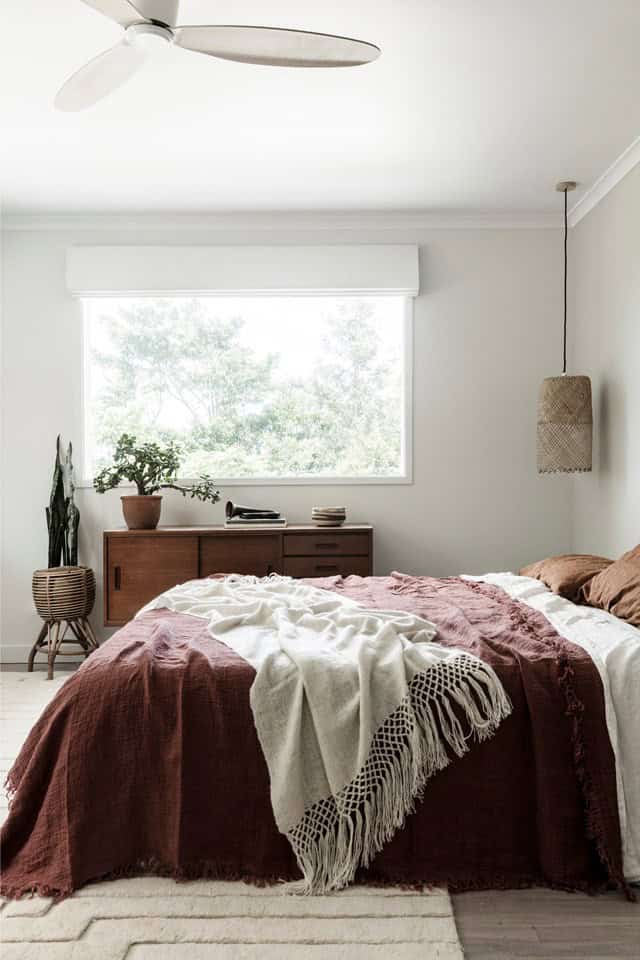 Macrame = bohemian style, and it doesn’t surprise us to see the handmade macrame element featured on the wall. Also can you spot the Middle Isle and Moroccan pendant light that adds a powerful boho touch to the room? This is actually a modern Mediterranean home with such eclectic touch of boho style.
