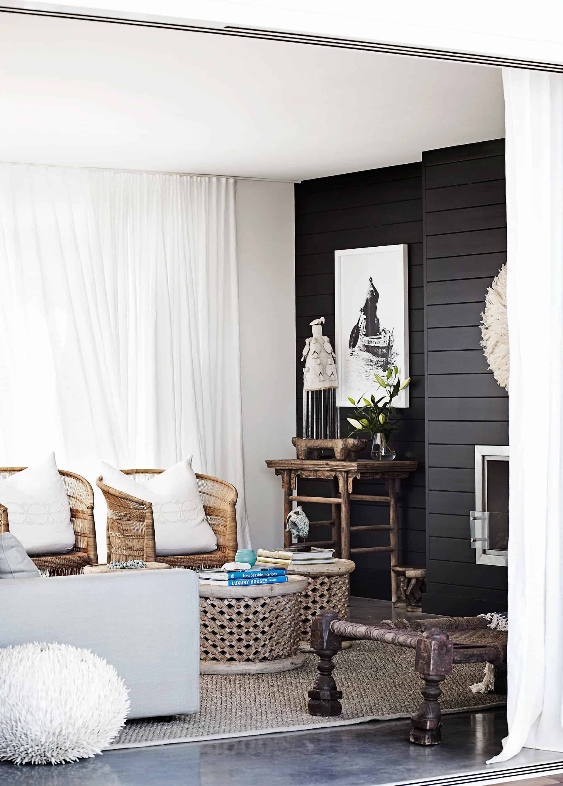 Rustic furniture mixed with organic and tribal objects? Yes, we are here for this! All these elements make a coastal aesthetic that got us dreaming of beachy boho style home like this one.