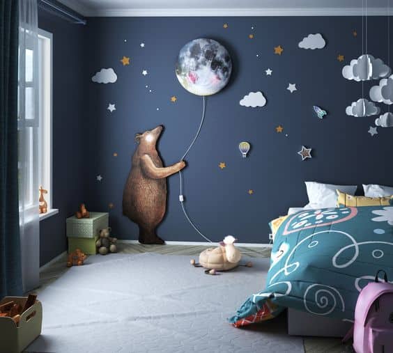 Animals always have a unique place in the child’s world. They are timeless and take different forms. The symbolism is pretty we think. It is an invitation for your child to take care of nature and living things. We find it hard to imagine that a kid with an animal-themed room would become a hunter many years later. (It must be possible but not that frequent!)