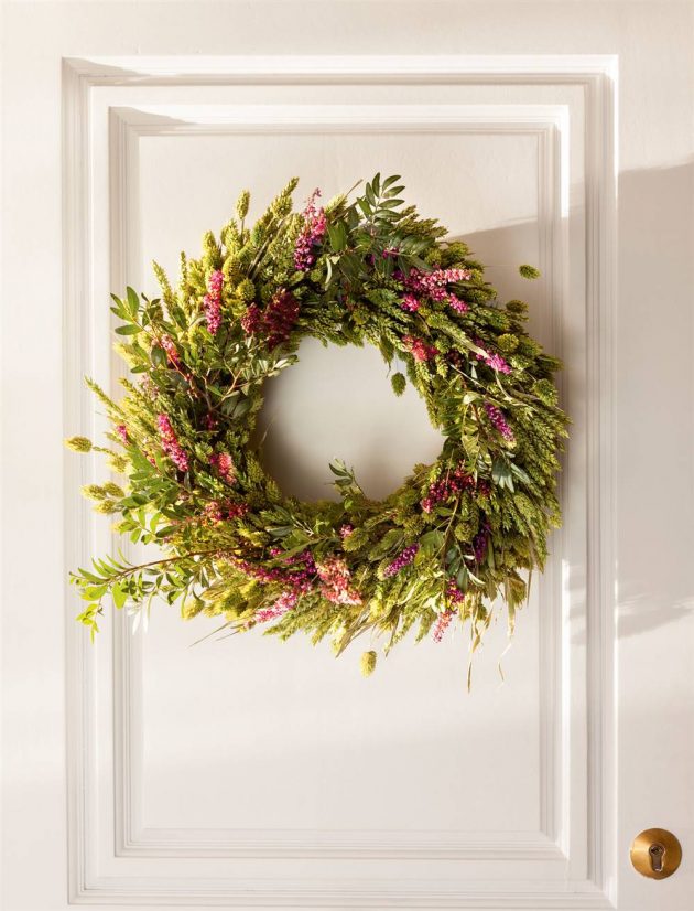 We decorate the hall with bouquets, garlands, and wreaths made with natural branches, flowers, and small fruits. Do you like it? You can do it at home, it’s very easy.