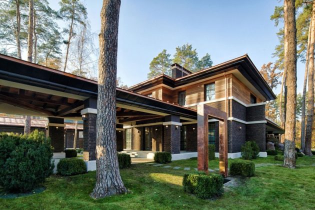 This contemporary Prairie House by Yunakov Architecture which is located in Bucha in Kiev, Ukraine pays tribute to the famous Robie house designed by Frank Lloyd Wright in 1909.