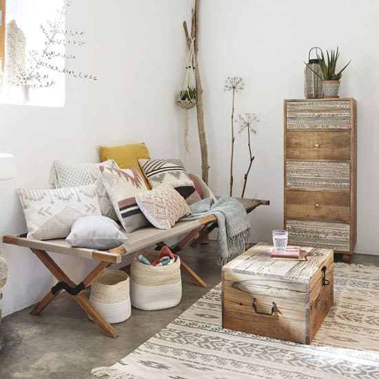 Create a little cocoon of softness for yourself by associating it with a jute rug, and plants associated with standing planters ! Decorative travel atmosphere guaranteed!