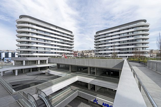 Real Merter which is a mixed-use building complex designed by Tago Architects led by Architect Gökhan Aktan Altuğ and located in Istanbul Merter, which is the center of the commercial life is synthesizing the lively commercial life at the street level and the three blocks of residences within itself with an architectural style not turning its back on its surroundings. Thanks to the shadowing elements applied on the facade of the building, the green roofs and the small squares created between the commercial fronts and the masses, the interpenetrating building complexes are linked with one another with a successful design.