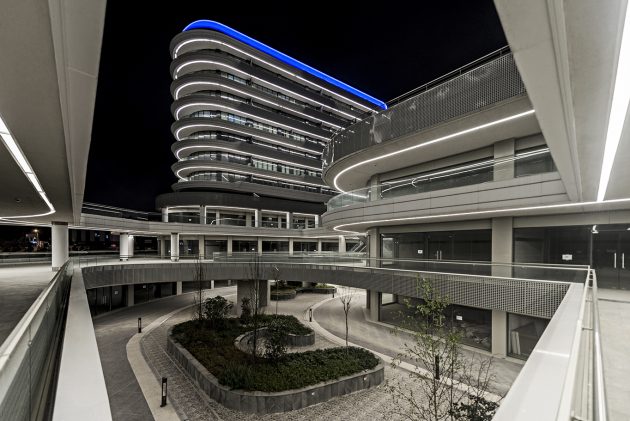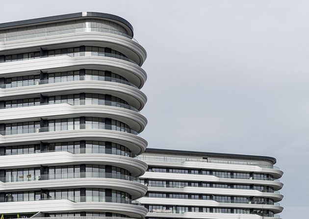 Real Merter is a mixed-use building complex designed by TAGO Architects in Istanbul, Turkey. This project merges the residential areas with commercial life by utilizing a unique design concept that brings comfort to the neighborhood with public areas integrated with green spaces. The green roofs and small squares can be found between the commercial fronts of the building complexes, linking one another in a successful and stylish manner.