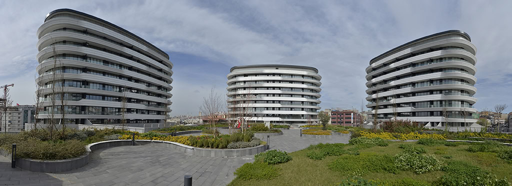 In this project with a total construction area of 89.500 m² the commercial life at the avenue has been made a part of the architectural design and a design was made that is integrating and living with the town. The triangles emerging from the relation of the land with the main avenues have been softened to give the triangle facades of the residential blocks and this has added value to the project giving space and maximum view to the residences