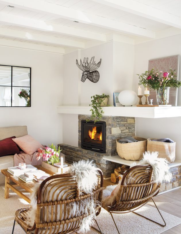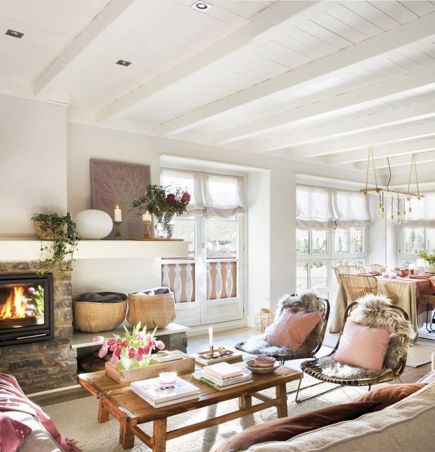 The decorator Carolina Juanes is responsible for the white and bright current appearance of this house in Baqueira. It used to be a dark, wasted apartment and is now very cozy with its white walls and pink and burgundy accents.