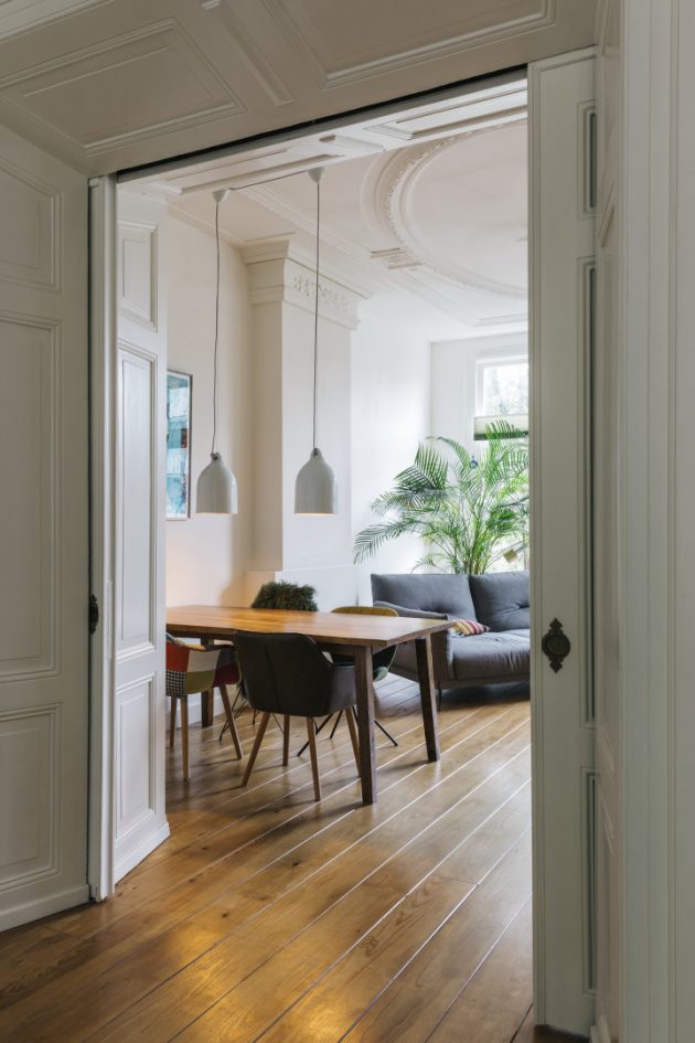 With respect to all this texture, loving and embracing all its details like typical cast iron radiators and ceiling ornaments, preserving the values was fundamental. Interventions were made very carefully and respectfully. Just enough touch, for a couple’s needs and expectations in today’s modern living. Design touches were neither abstained nor dominated.