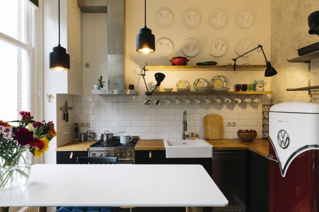 Located on Ceintuurbaan, a typical Amsterdam building is housing this cozy home for a vibrant couple. Over a typical street and facing a beautiful greenery, it is a very characteristic building. In parallel to the architecture, the interior is also full of character. With huge windows and high ceilings, the flat is very spacious and full of light.